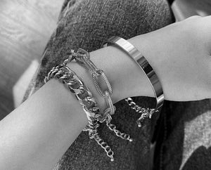 Paprasta sidabrinė arba auksinė apyrankė su mazgu. Nors dizainas yra paprastas, apyrankė atrodo labai originaliai ir daro įspūdį. Puikiai dera su oficialiais drabužiais ir yra mažas, bet charakteringas aksesuaras. Pagaminta iš juvelyrinio metalo, apyrankė yra universalaus dydžio ir gali būti lengvai pritaikyta bet kuriai moters rankai. Ji neturi alergenų, todėl tinka jautriems žmonėms. Nepaisant žemos kainos, apyrankė pagaminta su dideliu kruopštumu ir dėmesiu detalėms.