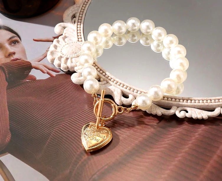Apyrankė pagaminta iš aukštos kokybės metalinių elementų ir akrilo perlų, kurie užtikrina ilgaamžiškumą ir elegantišką išvaizdą. Naudojamos nikelio neturinčios ir hipoalerginės medžiagos, todėl apyrankė yra saugi net ir jautriai odai.