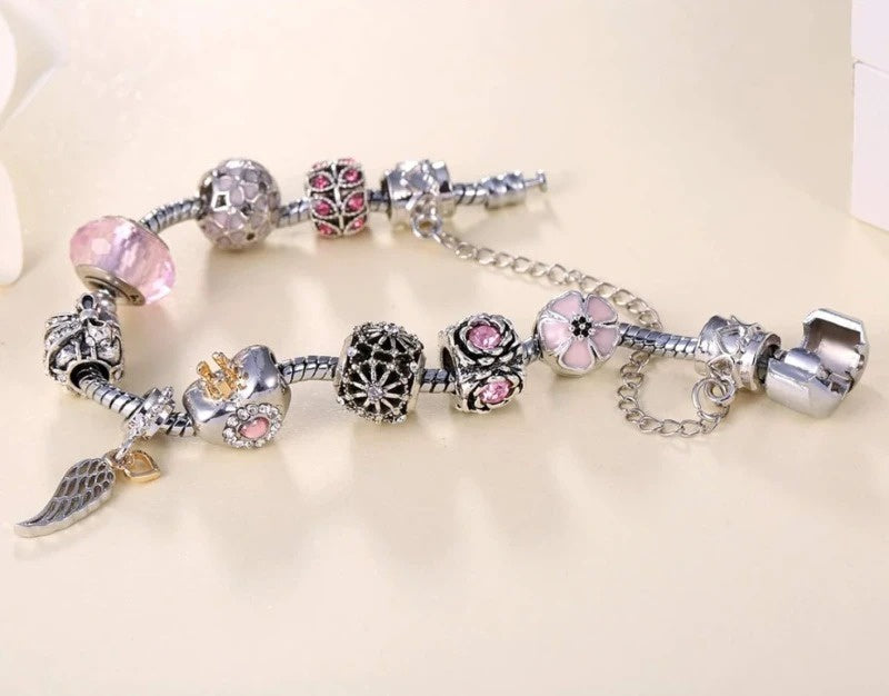 - Stilingi pakabukai: Kiekvieno pakabuko dydis yra apie 1 cm, suteikiant apyrankei elegancijos ir unikalumo.