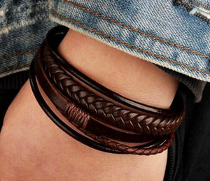 Vyriška odinė apyrankė V110 tamsiai ruda