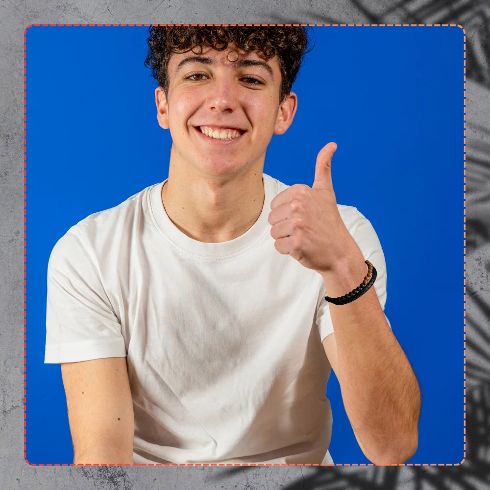 Prezentuojame naują vyrišką apyrankę, pagamintą iš aukščiausios kokybės natūralios odos ir akmenų, kuri puikiai derina klasiką su modernumu. Tai puikus aksesuaras kiekvienam vyrui, vertinančiam stilių, patvarumą ir eleganciją.