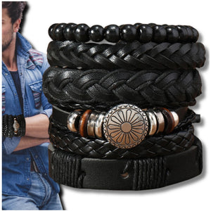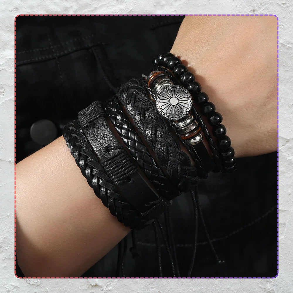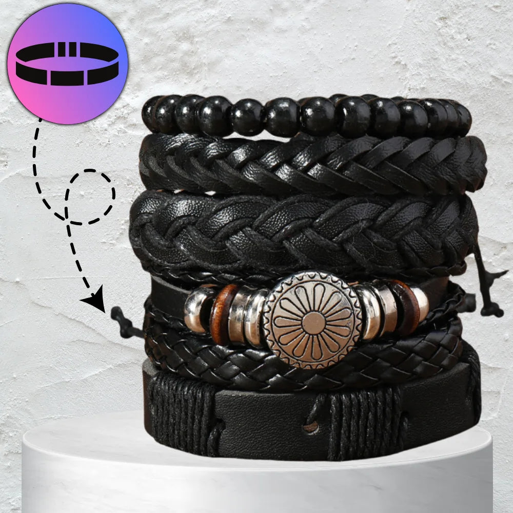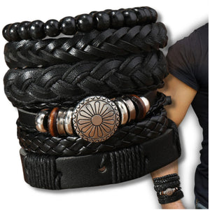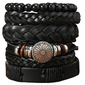 Vyriškų odinių apyrankių rinkinys su karoliukais (mix)