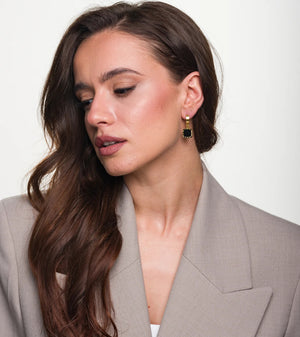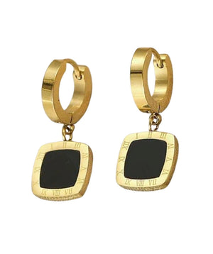 Atraskite rafinuotą eleganciją su mūsų prabangiais auksiniais auskarais iš chirurginio plieno 316L, papuoštais juodos monetos motyvu. Šie išskirtiniai auskarai sujungia klasikinį žavesį ir modernų dizainą, puikiai tinka kiekvienai moteriai, vertinančiai stilių ir kokybę.