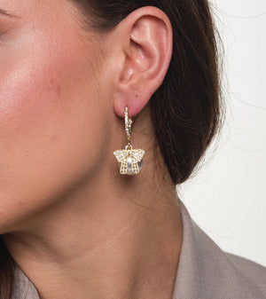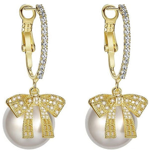 Moteriški auskarai su perlais ir dideliu kaspinu, auksinės spalvos
