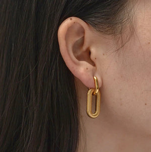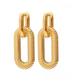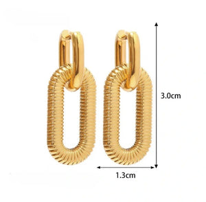 Šie elegantiški auskarai pagaminti iš aukštos kokybės chirurginio plieno 316L, kuris yra žinomas dėl savo atsparumo oro sąlygoms ir ilgaamžiškumo. Geometrinis dizainas suteikia modernumo ir stiliaus.