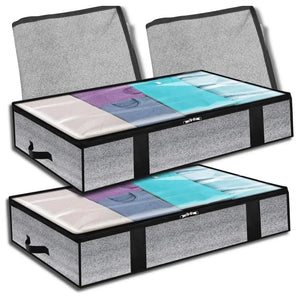 - Dviejų dalių organizatorių rinkinys, skirtas patalynei, drabužiams ir antklodėms laikyti.