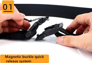 - QUICK RELEASE sagtis: Greitai atsegama magnetinė sagtis, pagaminta iš juodo plieno, užtikrina saugumą ir patogumą.