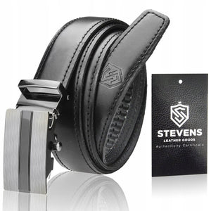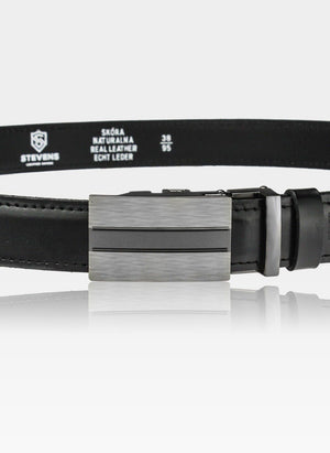 Vyriškas odinis diržas Stevens su automatine sagtimi, juodas D33