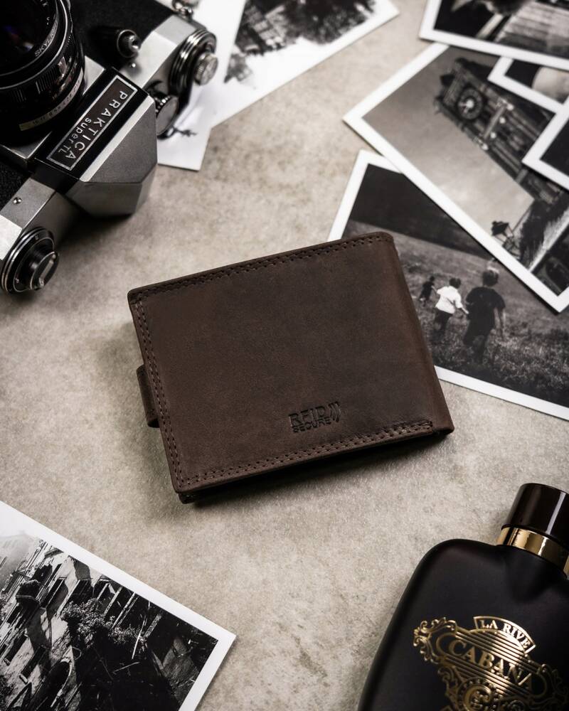 Piniginė pagaminta iš natūralios odos;