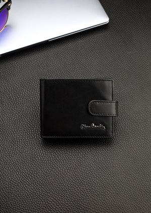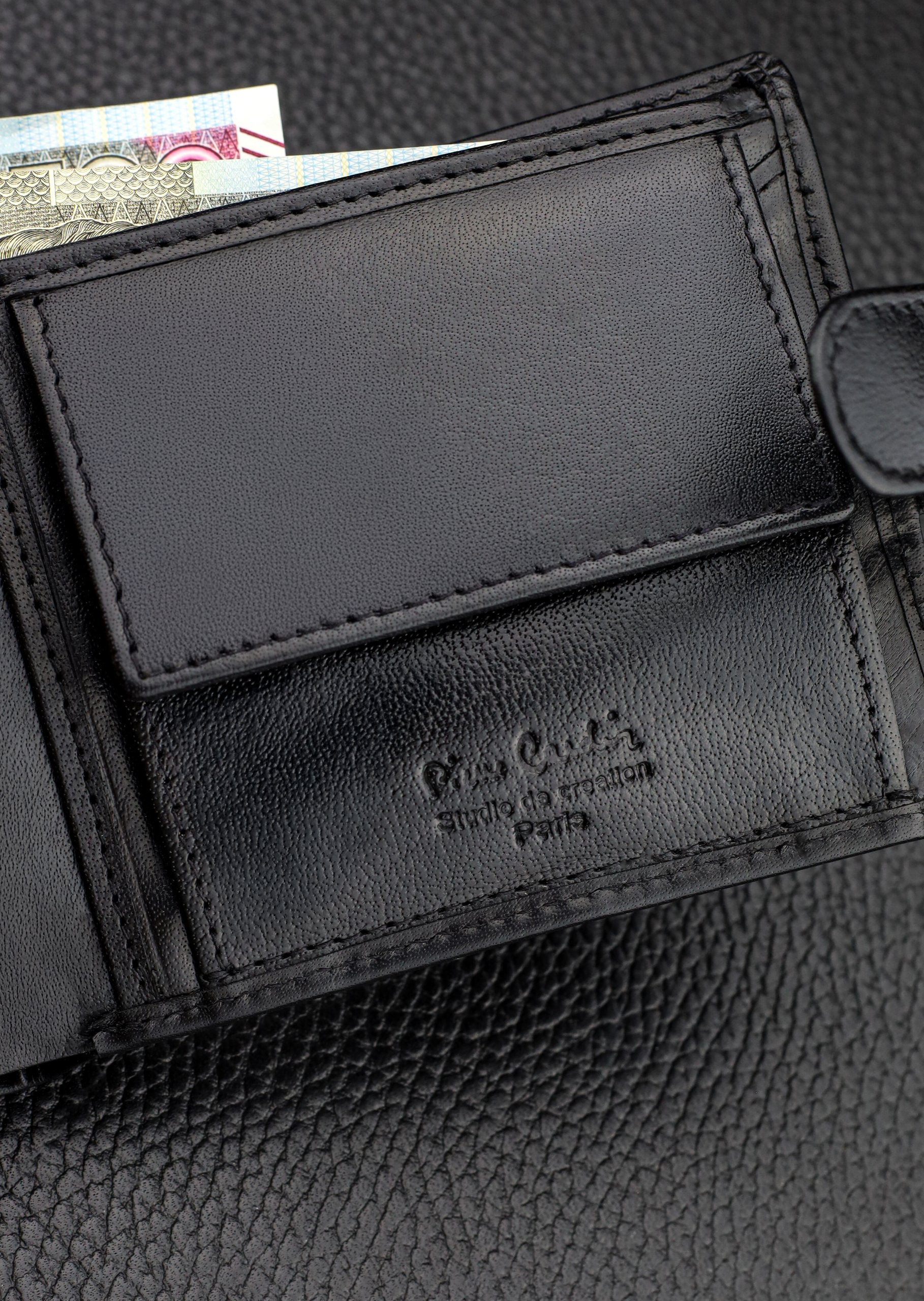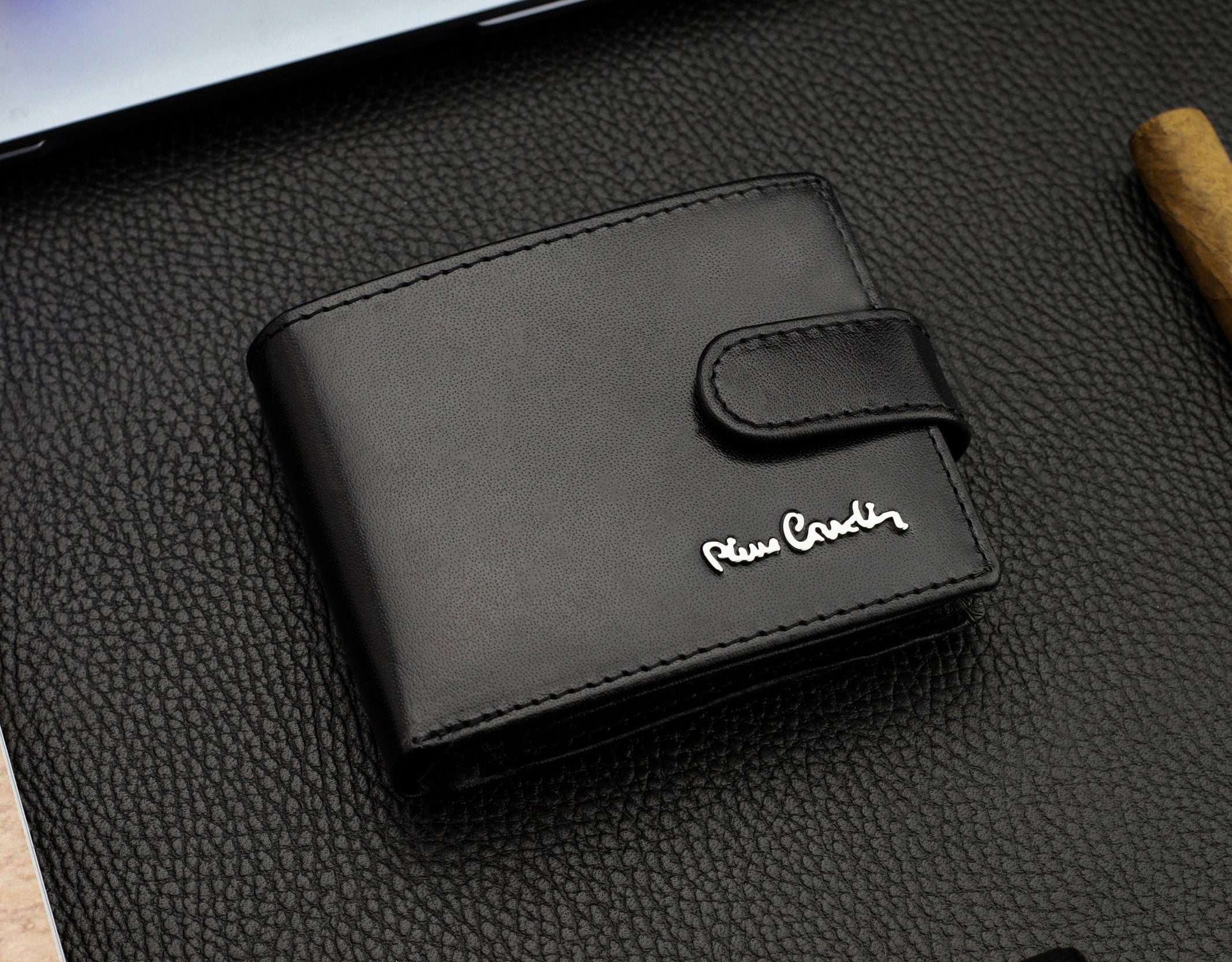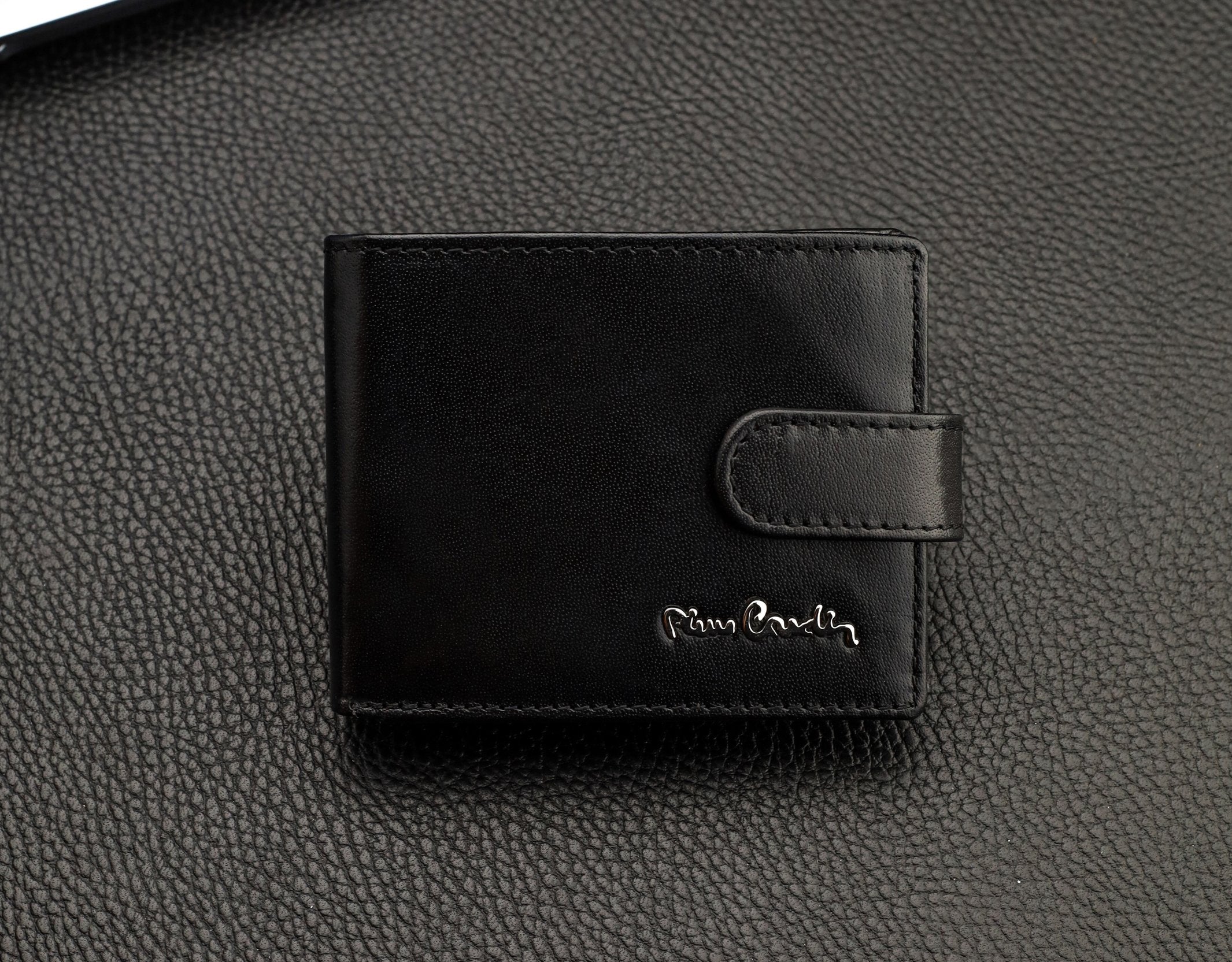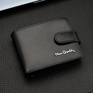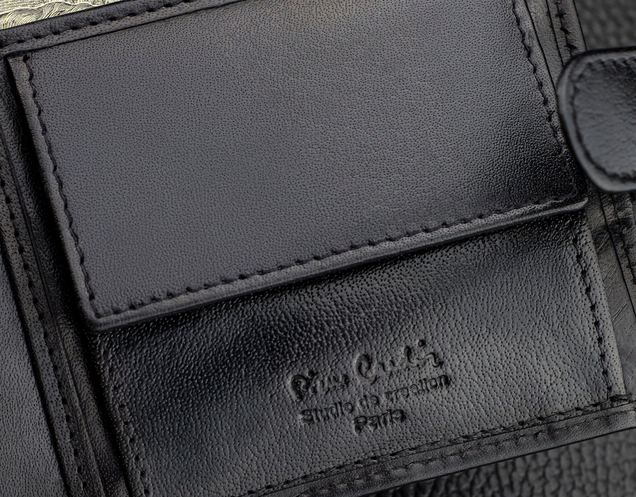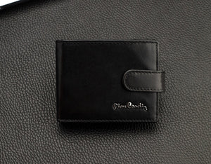 PIERRE CARDIN • Vyriška odinė piniginė RFID (horizontali, didesnė) + audinio diržas