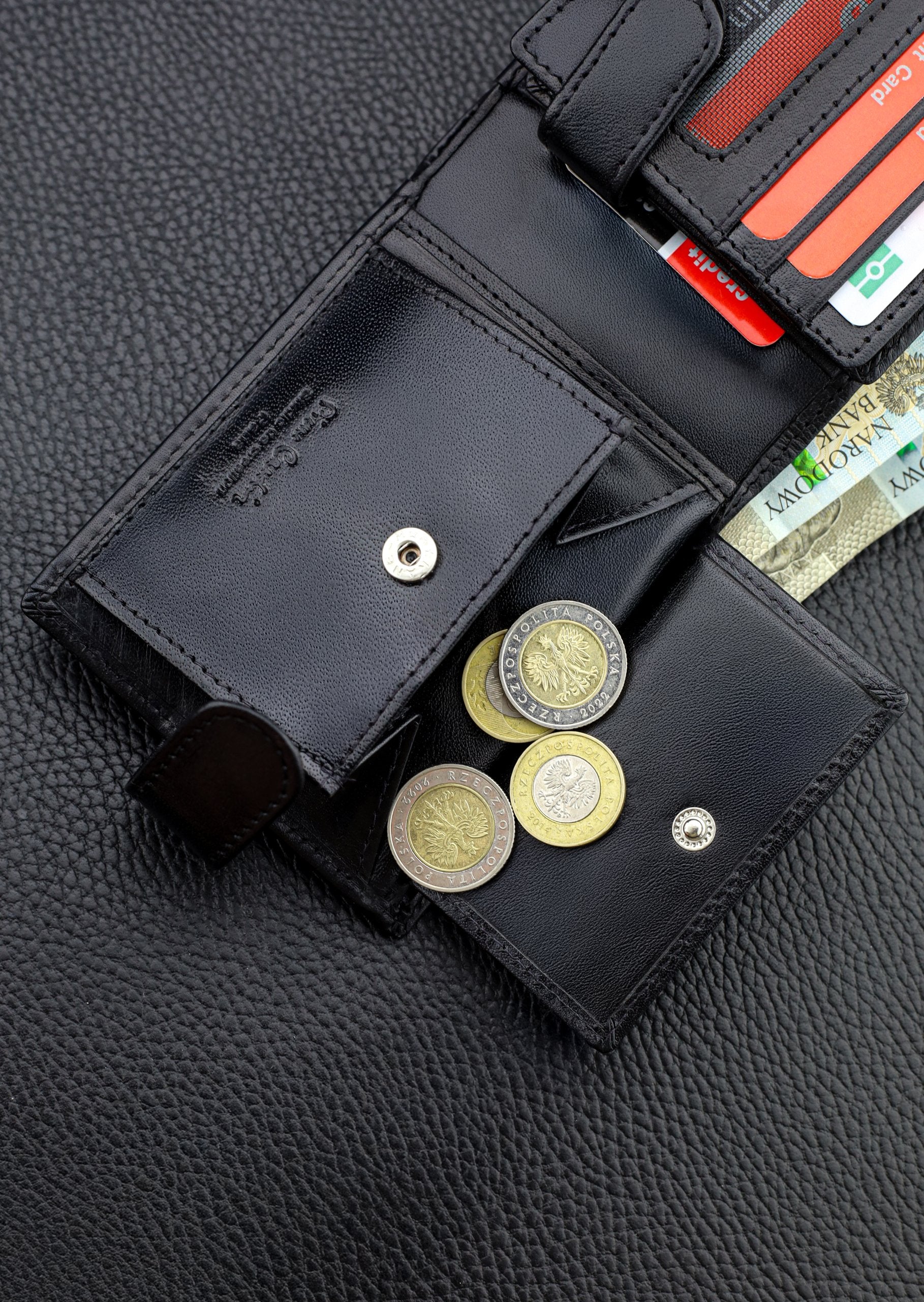 Pagaminta iš atrinktos natūralios odos – maloni liesti, elegantiškai blizgi ir ilgaamžė. Puiki dovana vertinantiems kokybę ir stilių. Kiekviena piniginė supakuota į dovanų dėžutę.