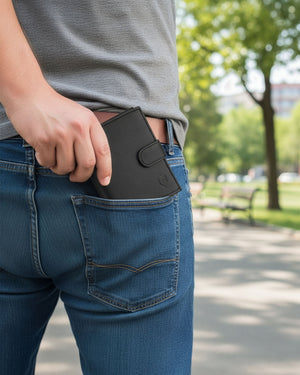 Vyriška odinė piniginė STEVENS su maišeliu, su RFID apsauga 326A