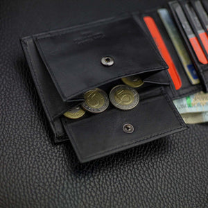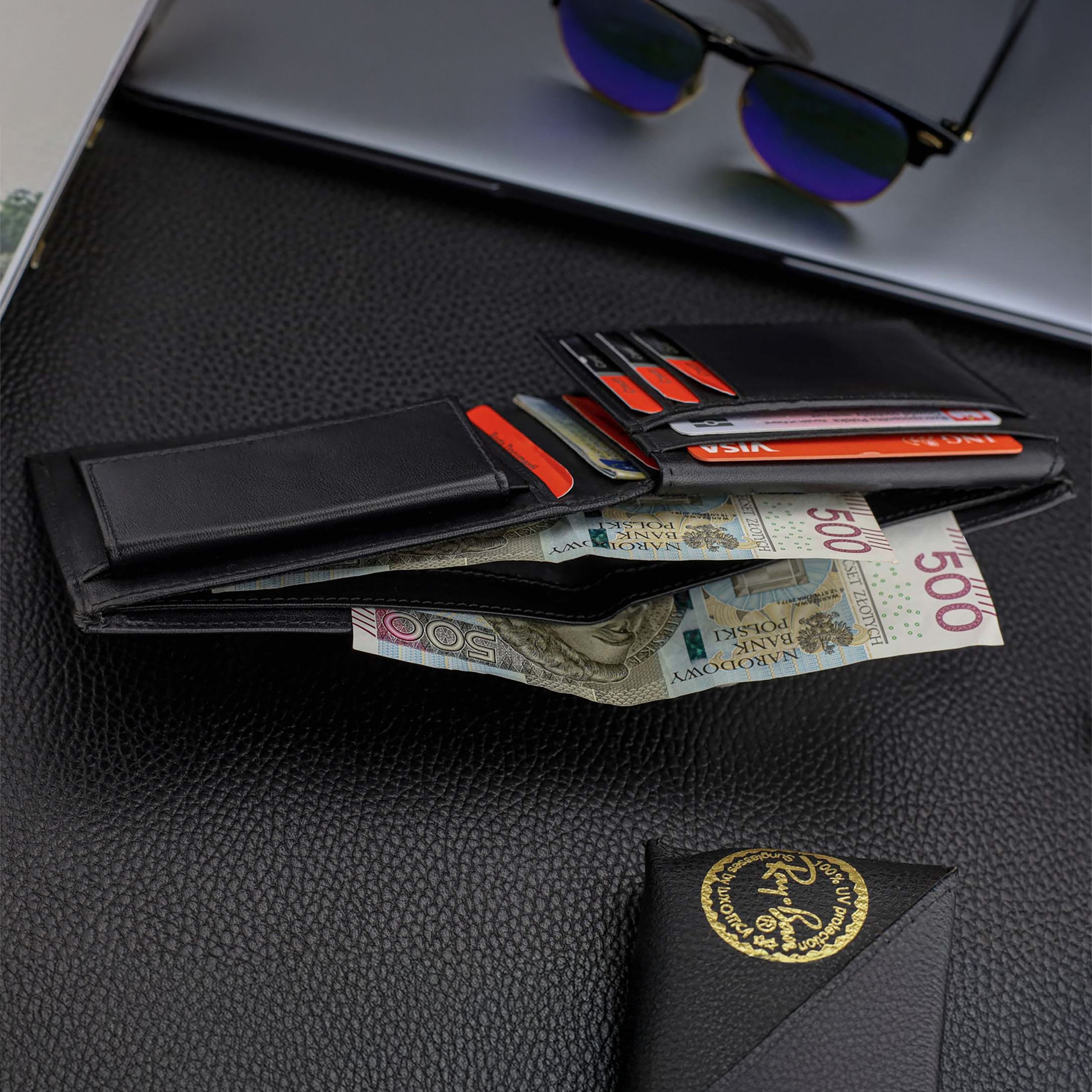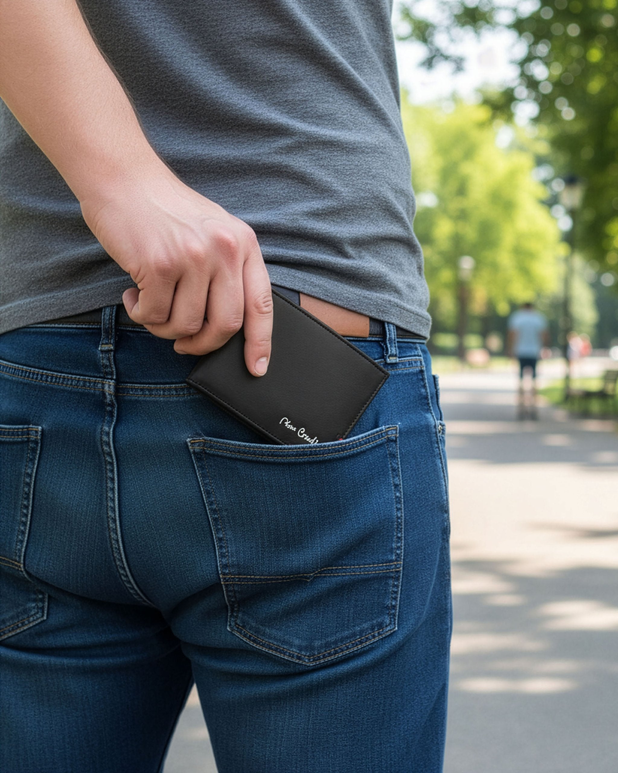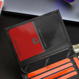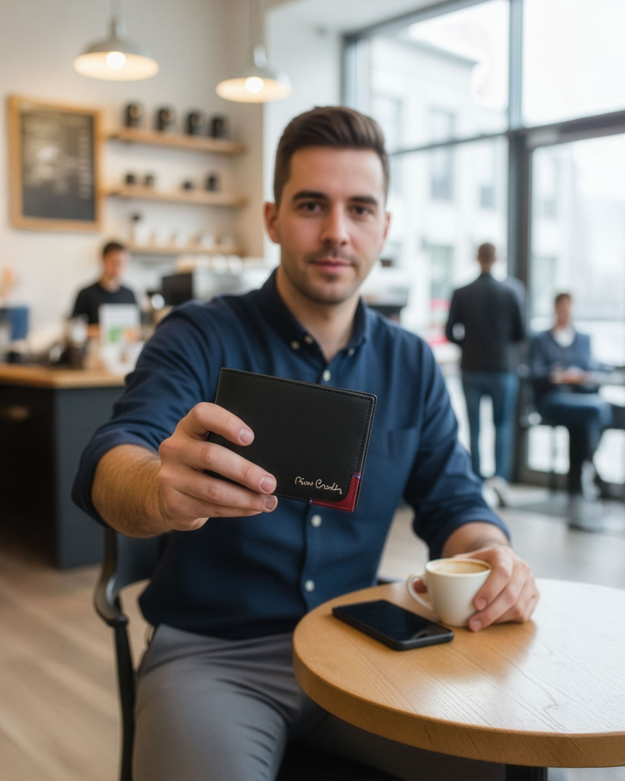 Piniginė turi RFID blokavimo sluoksnį, kuris apsaugo bekontaktes korteles nuo nepageidaujamų nuskaitymų – tai praktiškas pasirinkimas kasdienai ir kelionėms.