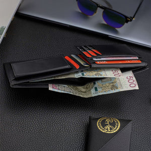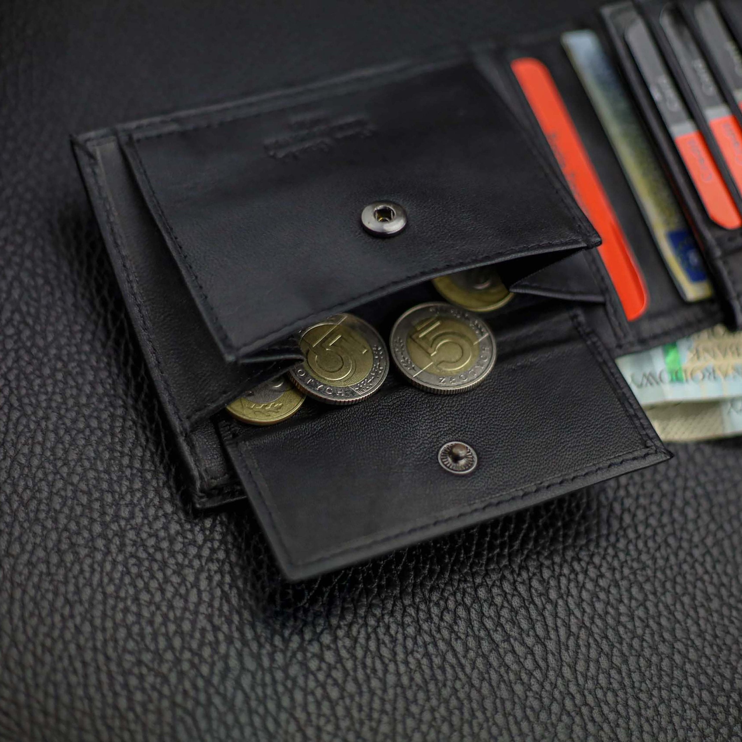 Pagaminta iš kokybiškos natūralios odos, pasižyminčios maloniu paviršiumi ir ilgaamžiškumu. Piniginė praktiška, talpi ir išlaiko elegantišką formą net intensyviai naudojant.