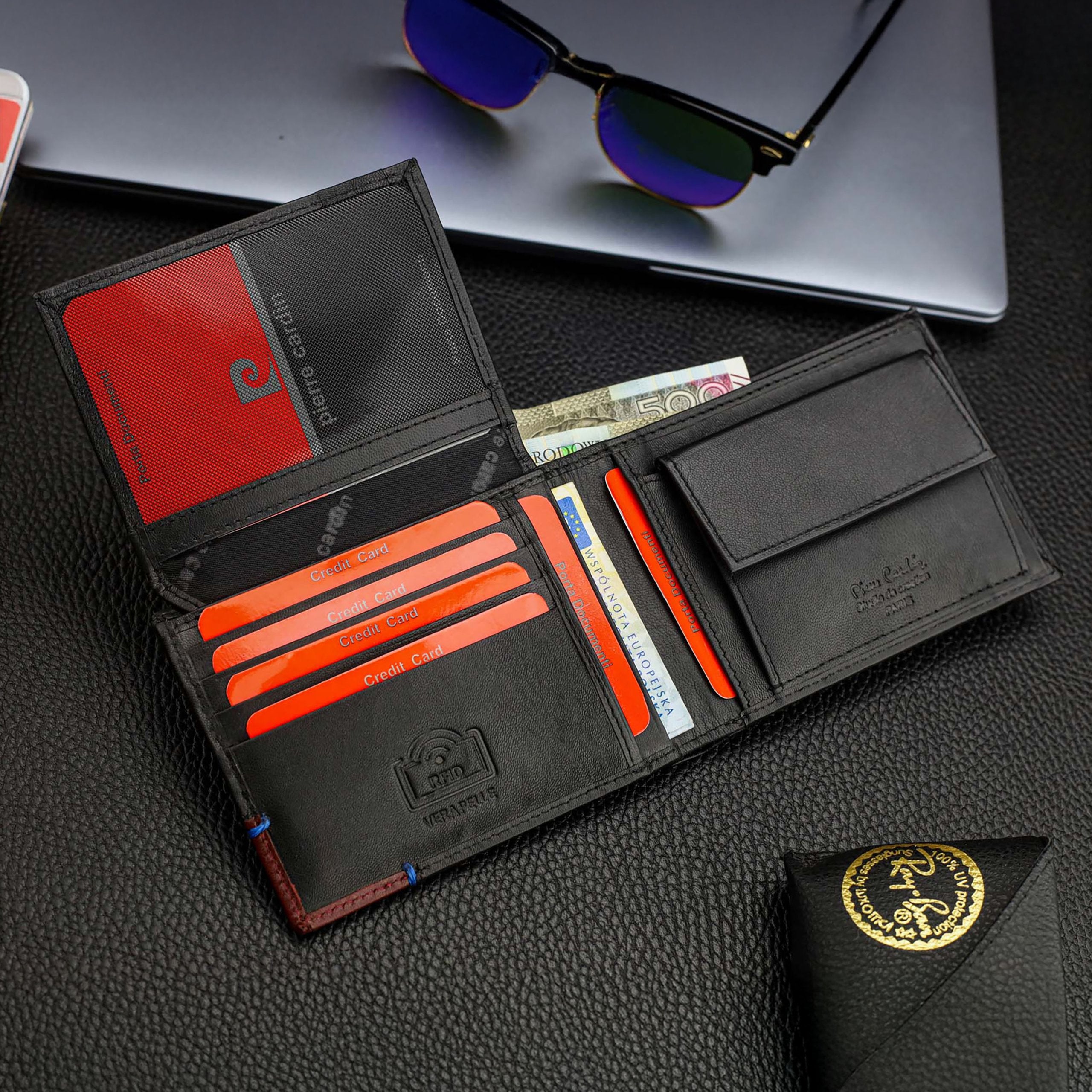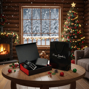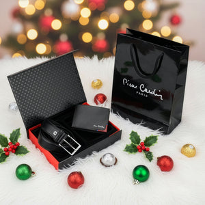 Vyriška piniginė ir diržas Pierre Cardin dėžutėje, juoda, natūrali oda