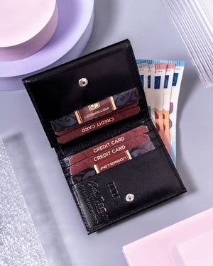 Ši piniginė ne tik stilinga, bet ir funkcionali, turinti RFID apsaugą, kuri padeda apsaugoti jūsų korteles nuo nepageidaujamo nuskaitymo. Kompaktiškas dydis leidžia patogiai nešiotis ją rankinėje ar kišenėje, o pakankamas kortelių skyrių skaičius užtikrina, kad visada turėsite vietos svarbiausioms kortelėms.