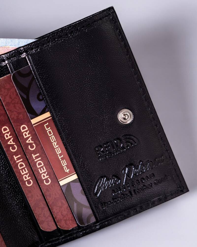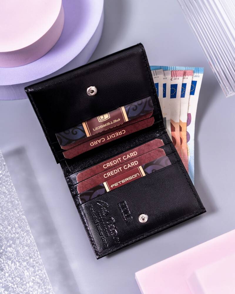 Ši elegantiška moteriška piniginė iš Peterson yra pagaminta iš aukštos kokybės natūralios odos, užtikrinančios ilgaamžiškumą ir stilingą išvaizdą. Juodos spalvos dizainas suteikia klasikinį ir universalų įvaizdį, puikiai derantį prie bet kokios aprangos.