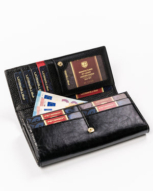 Ši elegantiška moteriška piniginė iš natūralios odos ne tik stilinga, bet ir praktiška. Juoda spalva suteikia klasikinį įvaizdį, o didelis dydis užtikrina, kad turėsite pakankamai vietos visiems savo kortelėms ir gryniesiems. Integruota RFID apsauga padės apsaugoti jūsų asmeninius duomenis nuo neteisėto nuskaitymo.