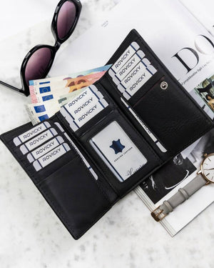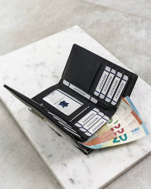Ši piniginė ne tik stilinga, bet ir praktiška, su daugybe skyrių kortelėms bei specialiu skyreliu monetoms. Be to, integruota RFID apsauga užtikrina jūsų kortelių saugumą nuo neteisėto nuskaitymo.