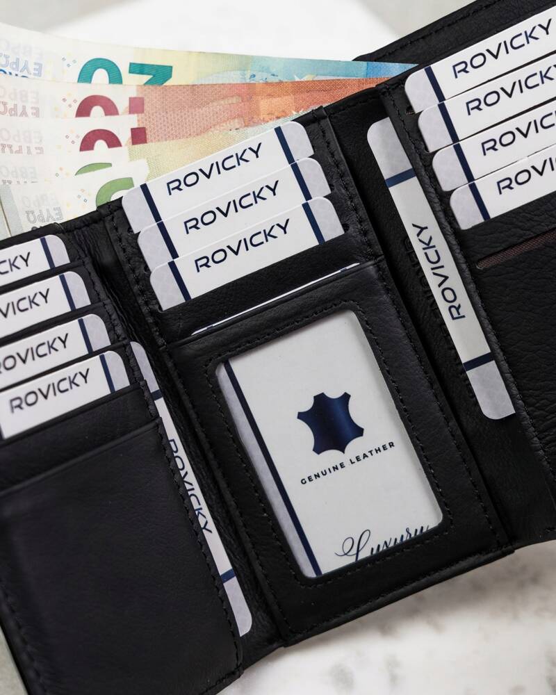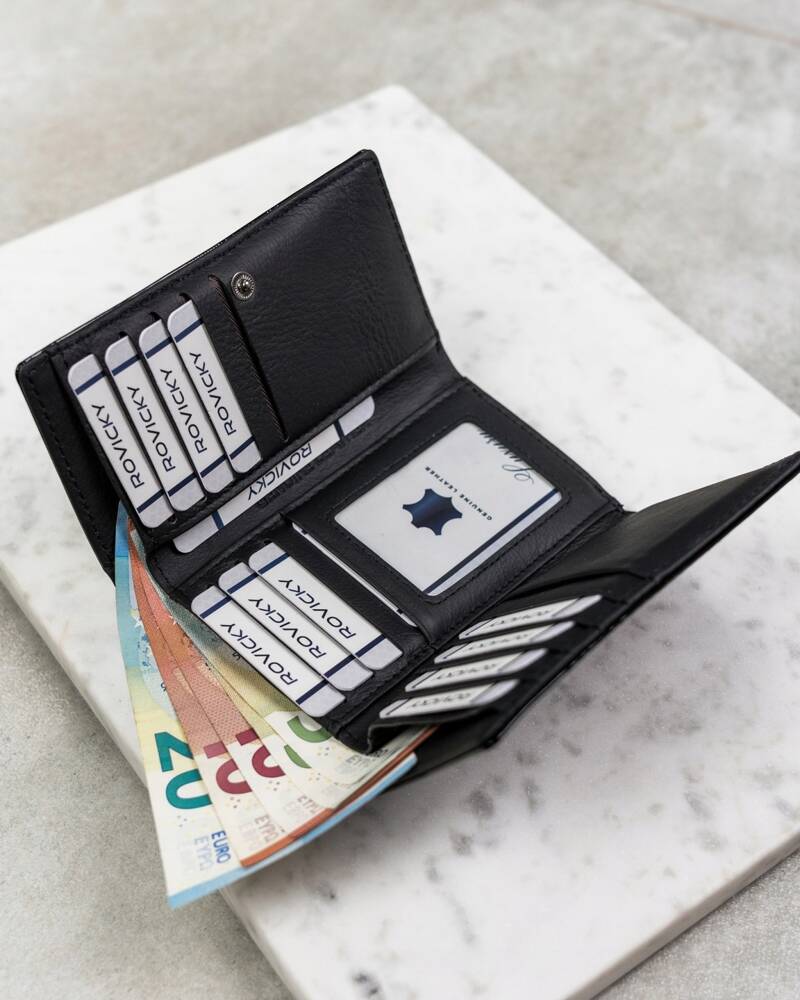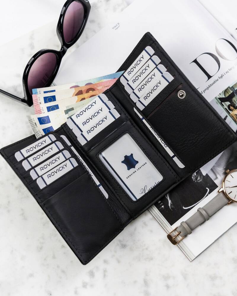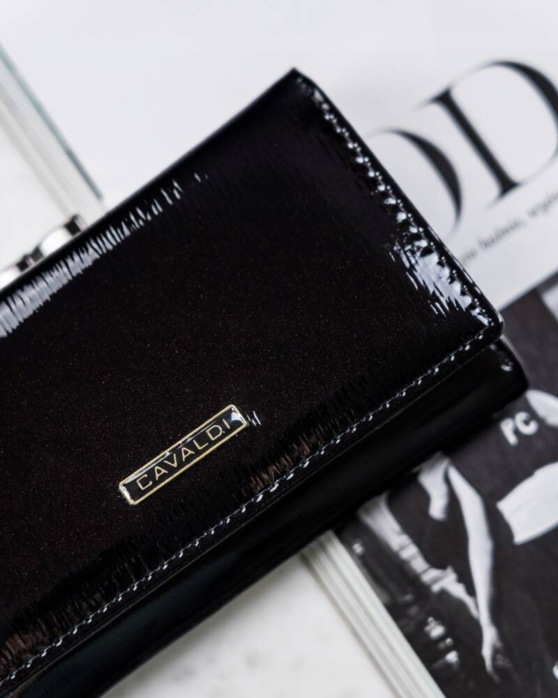 Elegantiška ir funkcionali moteriška piniginė iš 4U Cavaldi, pagaminta iš aukštos kokybės natūralios odos. Ši juodos spalvos piniginė puikiai tiks tiek kasdieniam naudojimui, tiek ypatingoms progoms.