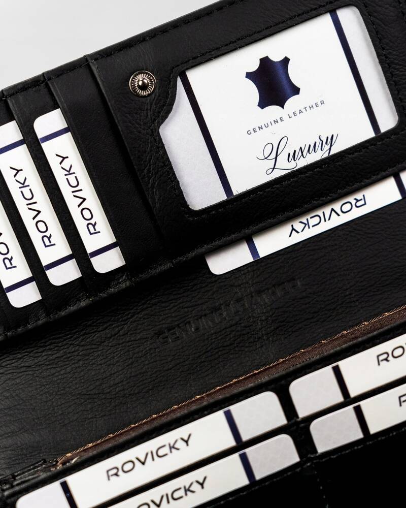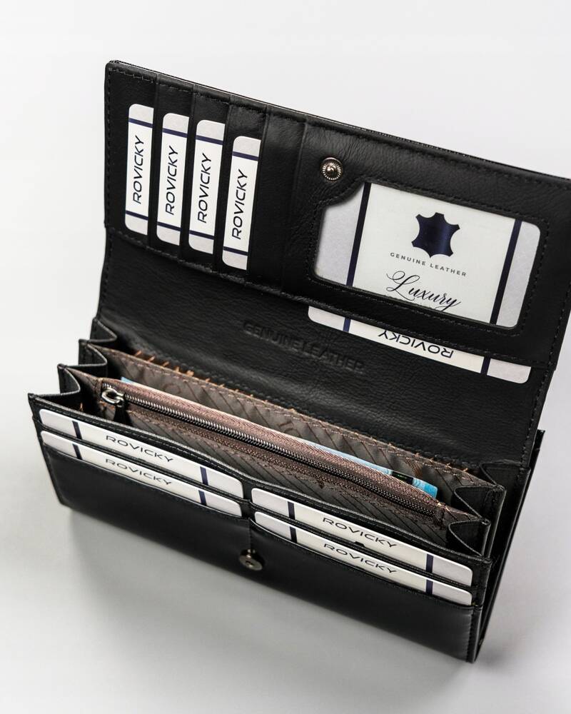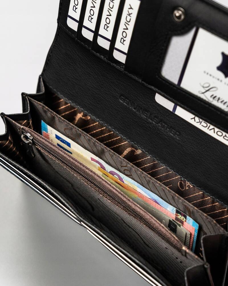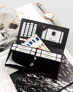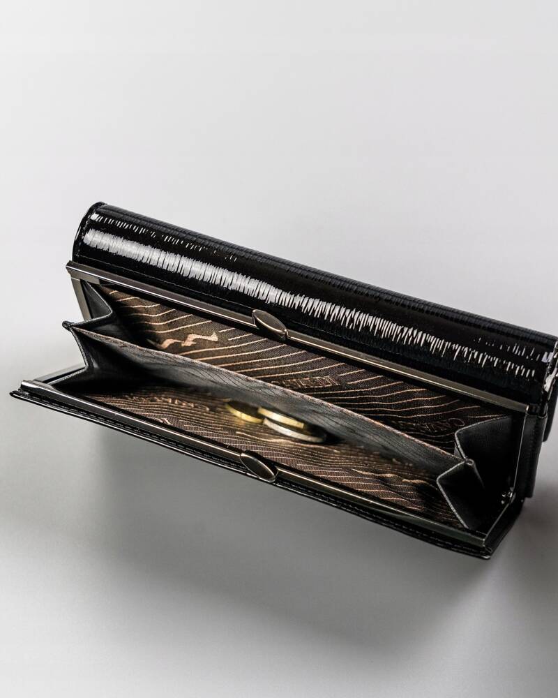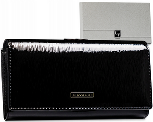 Ši elegantiška moteriška piniginė iš 4U Cavaldi yra puikus pasirinkimas ieškantiems stilingo ir funkcionalaus aksesuaro. Pagaminta iš aukštos kokybės natūralios ir lakuotos odos, ji ne tik atrodo prabangiai, bet ir užtikrina ilgaamžiškumą. Juoda spalva suteikia universalumo, todėl piniginė puikiai derės prie įvairių aprangos stilių. Dėl integruotos RFID apsaugos jūsų kortelės bus saugios nuo nepageidaujamo nuskaitymo. Patogus kortelių ir monetų skyrių išdėstymas leis lengvai organizuoti jūsų finansus.