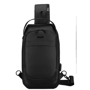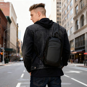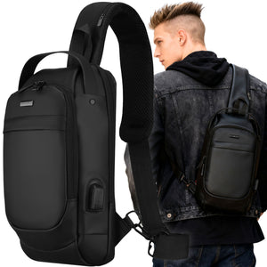 Juoda vyriška rankinė per petį iš ekologiškos odos su USB jungtimi
