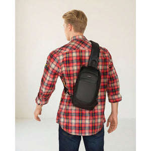 Talpi vyriška per petį nešiojama rankinė „Rovicky“ su USB jungtimi, juoda, iš ekologiškos odos ST84
