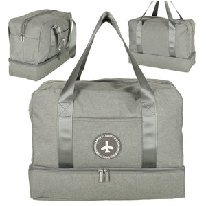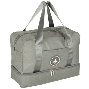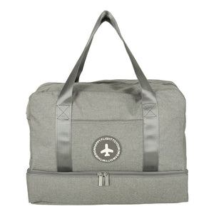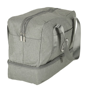 Šis pilkas kelioninis krepšys yra idealus pasirinkimas tiek verslo, tiek laisvalaikio kelionėms. Jis pasižymi penkiais skyriais, kurie leidžia patogiai susidėti drabužius, aksesuarus ir kitus reikalingus daiktus. Viena iš kišenių turi vandeniui atsparų pamušalą, kuris apsaugo turinį nuo drėgmės. Visi skyriai užsegami užtrauktukais, užtikrinančiais saugų daiktų transportavimą. Dvi patogios rankenos palengvina krepšio nešiojimą. Kompaktiški 30 x 39 x 18 cm matmenys leidžia šį krepšį naudoti kaip rankinį bagažą lėktuvuose.