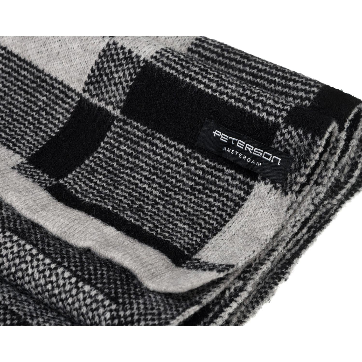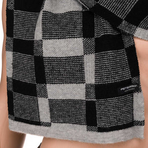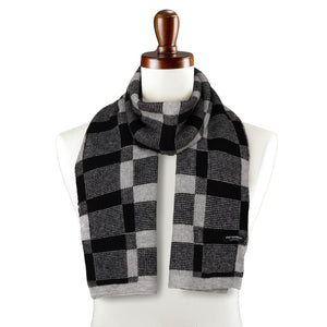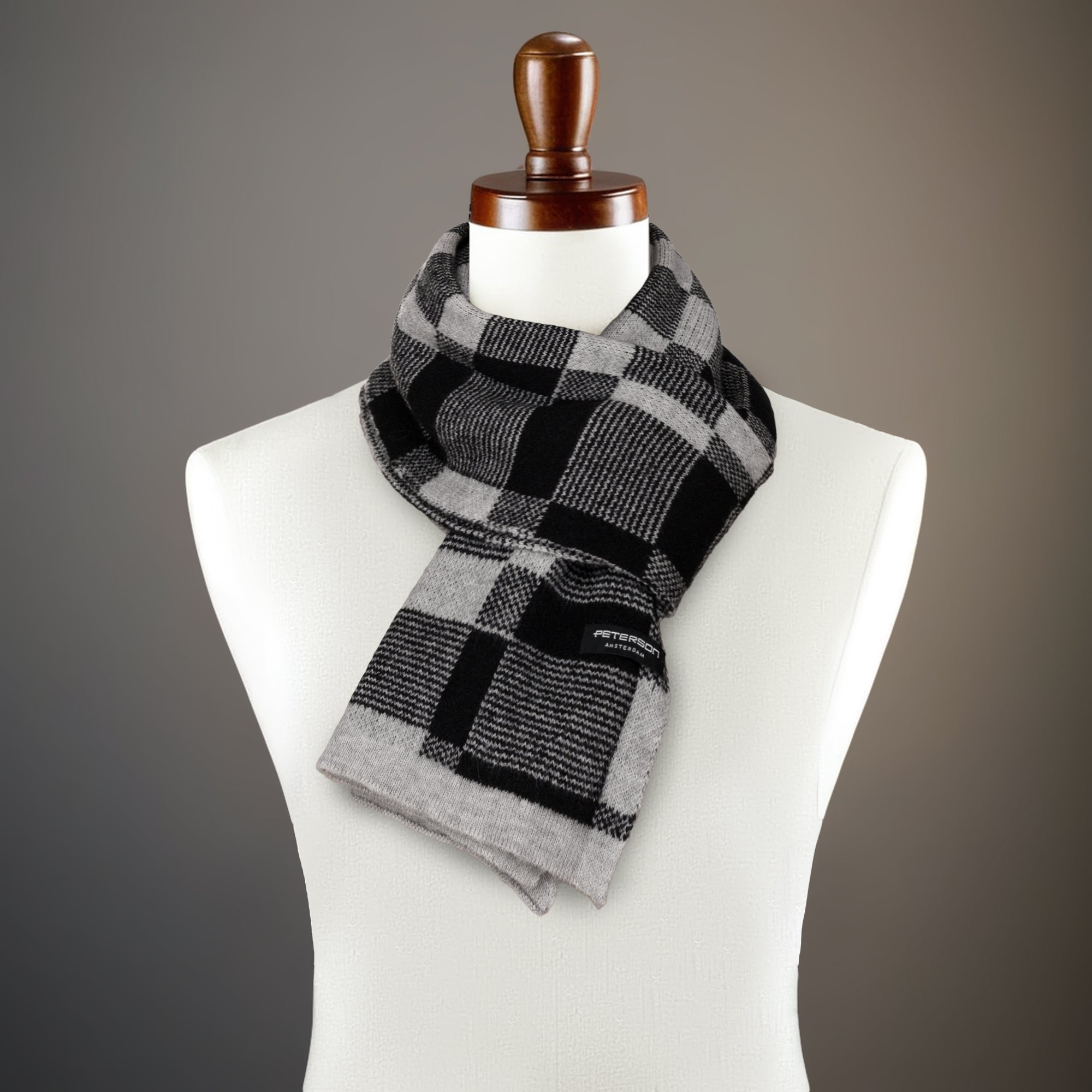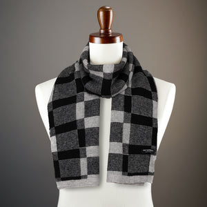 Elegantiškas vyriškas Peterson šalikas iš akrilo – šiltas pilkas su juodais akcentais kasdienai ir darbui.