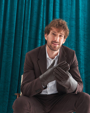 Šios vyriškos pirštinės yra pagamintos iš aukščiausios kokybės natūralios odos, kuri pasižymi švelniu blizgesiu ir smulkia, grūdėta tekstūra. Pirštinės turi patogų užsegimą, užtikrinantį puikų prigludimą.