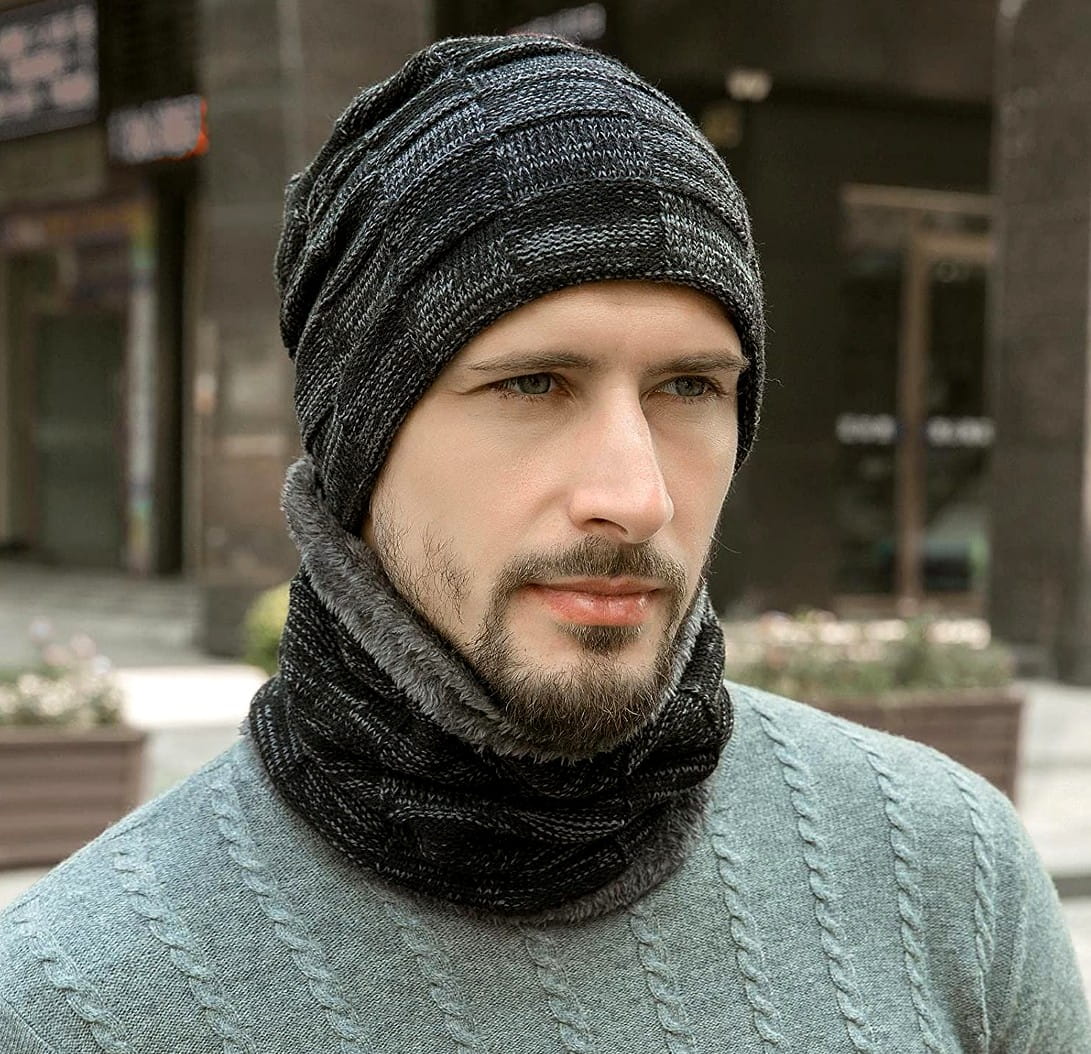 Šis dviejų dalių vyriškas komplektas yra puikus pasirinkimas šaltajam sezonui. Komplektas apšiltintas minkštu kailiuku, kuris užtikrina šilumą ir komfortą. Universalus raštas puikiai derės su įvairių spalvų vyriškais švarkais ir paltais. Dėl tamprumo, kepurė nespaudžia galvos ir lengvai užsideda.