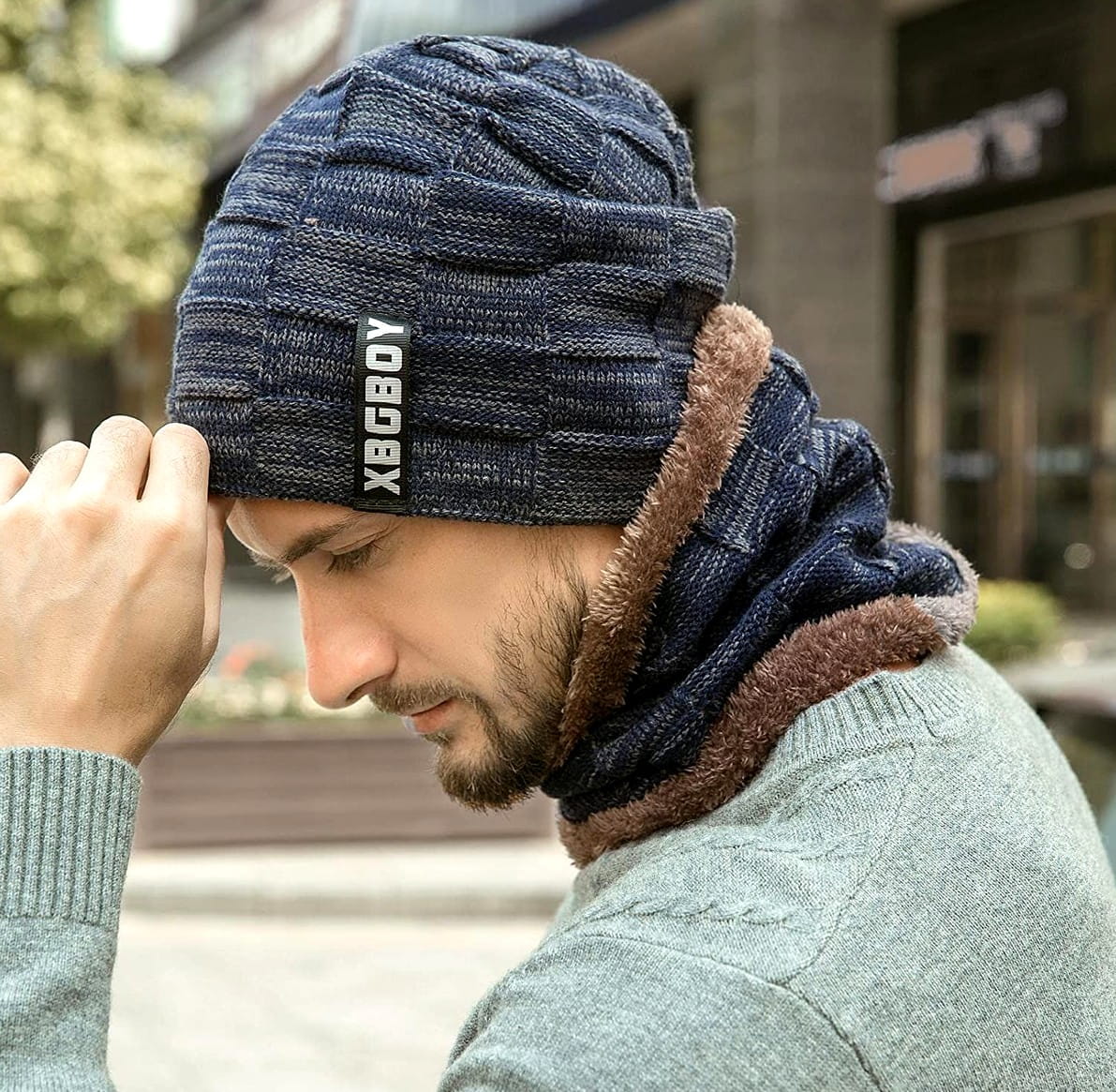 Šis dviejų dalių vyriškas komplektas, apšiltintas minkštu kailiuku, puikiai tiks šaltuoju metų laiku. Universalus raštas lengvai derės su įvairių spalvų vyriškais švarkais ir paltais. Komplektas yra tamprus, todėl patogiai priglunda prie galvos ir užtikrina greitą užsidėjimą.