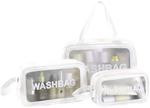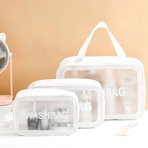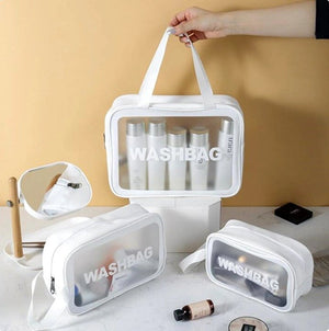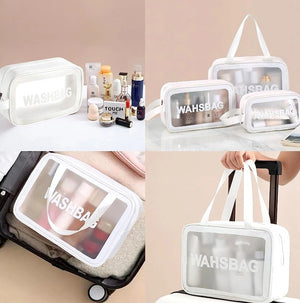 Praktiškas ir stilingas vandeniui atsparių kosmetinių rinkinys, puikiai tinkantis kasdieniam naudojimui ir kelionėms.