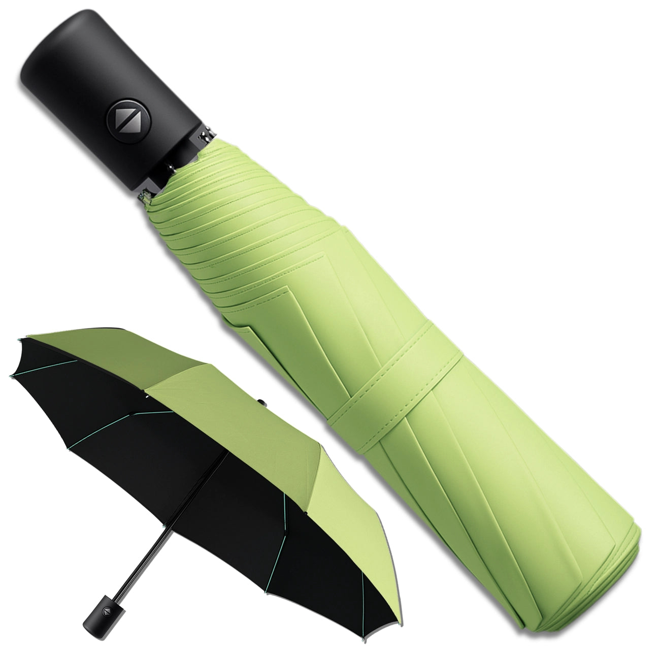 Šis žalias skėtis yra elegantiškas ir funkcionalus, su tvirta konstrukcija ir patogia plastikine rankena. Automatinis mechanizmas leidžia greitai atidaryti ir uždaryti skėtį, o hidroizoliacinė medžiaga apsaugo nuo lietaus ir blokuoja UV spindulius.