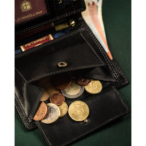 Piniginės vidus sukurtas siekiant maksimalaus komforto ir praktiškumo. Dėl gerai apgalvoto išplanavimo į jį sutalpinsite viską, ko reikia – korteles, dokumentus, banknotus ir monetas.