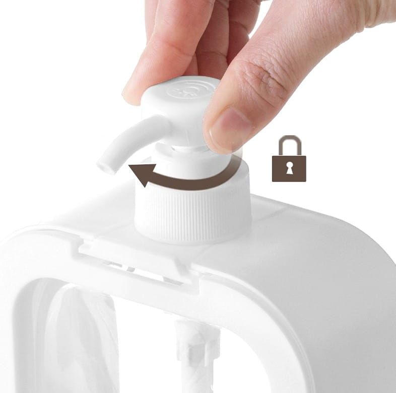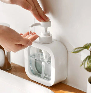 Elegantiškas baltas skysto muilo, losjonų ar indų plovimo skysčio dozatorius