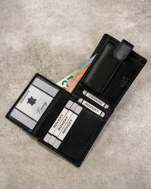 - Banknotų skyriai: 2 atviros kišenės, einančios per visą piniginės ilgį.