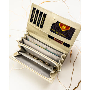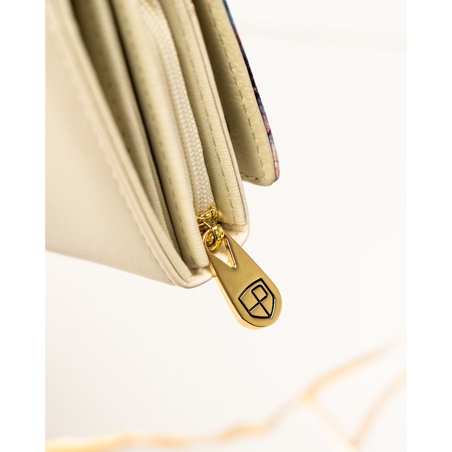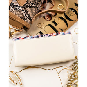 Peterson moteriška piniginė iš dirbtinės odos, smėlios spalvos su gėlių raštu.