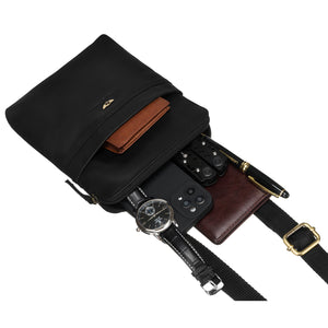 - Kompaktiški matmenys: 20 cm aukštis, 17 cm plotis, 3 cm gylis, leidžiantys patogiai nešiotis visus būtiniausius daiktus.