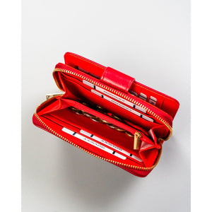 Didelis raudonas moteriškas piniginės tipo dėklas iš ekologiškos odos