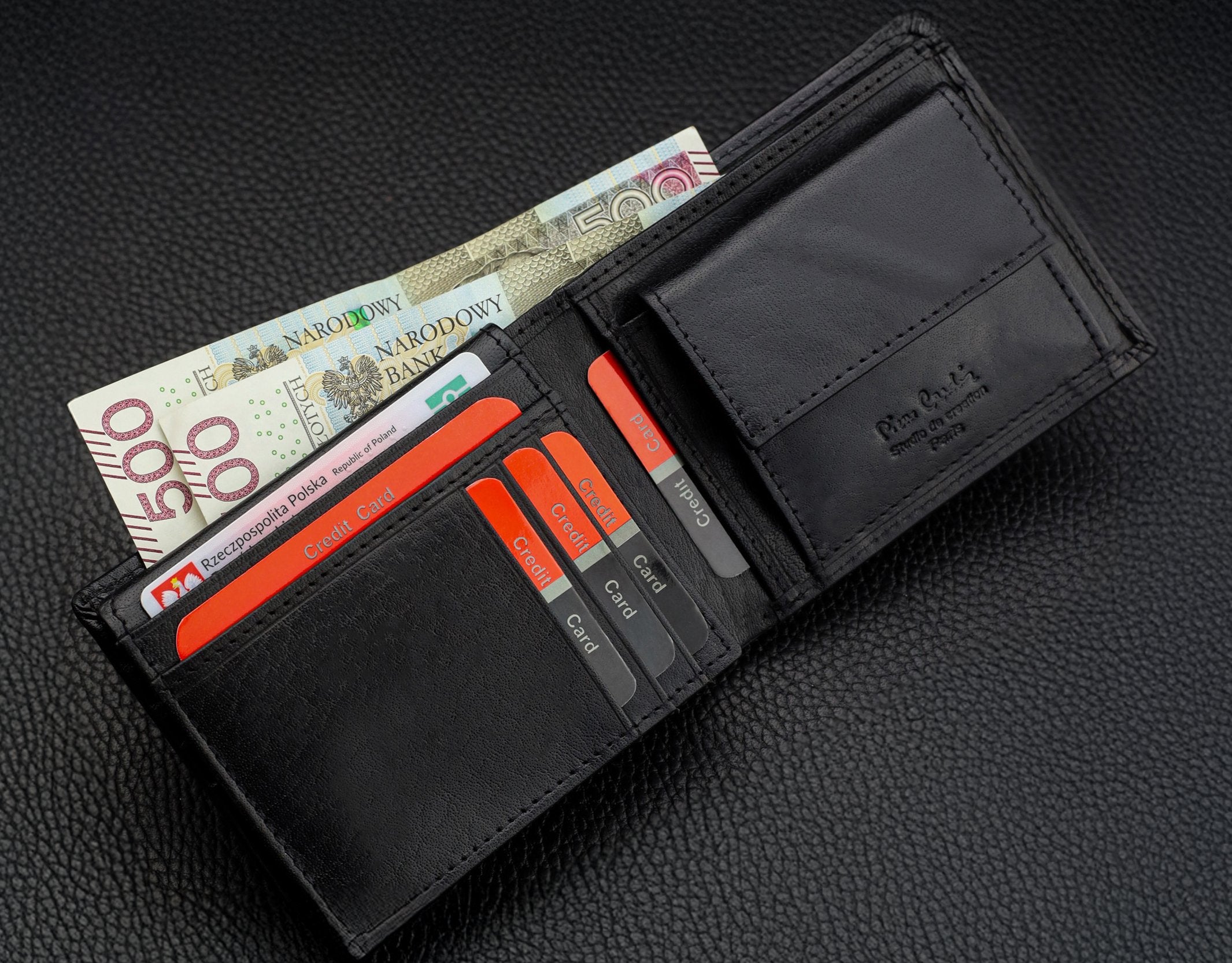 - ➕ Funkcionalus vidus – 9 kortelių lizdai, 2 banknotų skyriai, monetų kišenė, langelis nuotraukai.