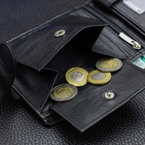 Ši horizontali piniginė pagaminta iš rinktinės natūralios odos, pasižyminčios švelnumu ir subtiliu blizgesiu. Tai aksesuaras, sukurtas vertinantiems tvarką ir patogumą – daugybė skyrių užtikrina, kad visi svarbiausi dokumentai ir kortelės visada turės savo vietą.