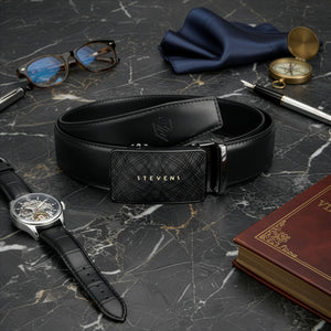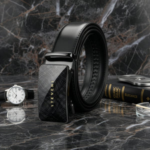 Prabangus dovanų rinkinys vyrui: STEVENS® odinė piniginė ir automatinis diržas