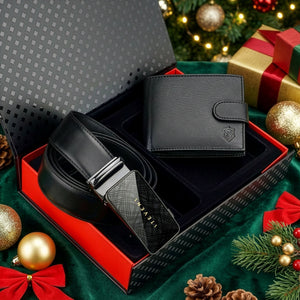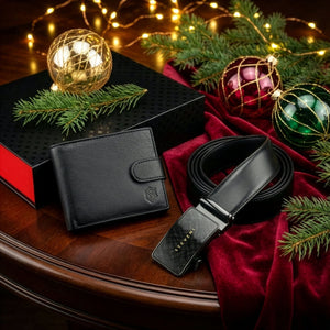 Ieškote stilingos ir praktiškos dovanos? Šis aukščiausios klasės rinkinys yra idealus pasirinkimas šiuolaikiškam vyrui. Komplektą sudaro horizontali vyriška piniginė iš natūralios odos bei elegantiškas juodas diržas su automatine sagtimi. Viskas supakuota į estetišką firminę dėžutę – paruošta įteikti iškart.