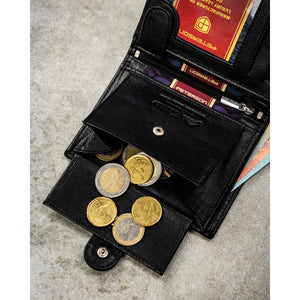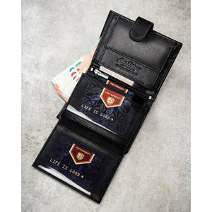 Piniginė pagaminta iš natūralios odos, kuri pasižymi tvirtumu ir elegantiška tekstūra. Integruota RFID apsauga padeda apsaugoti mokėjimo korteles nuo bekontakčio duomenų nuskaitymo, todėl kasdien naudoti dar saugiau.