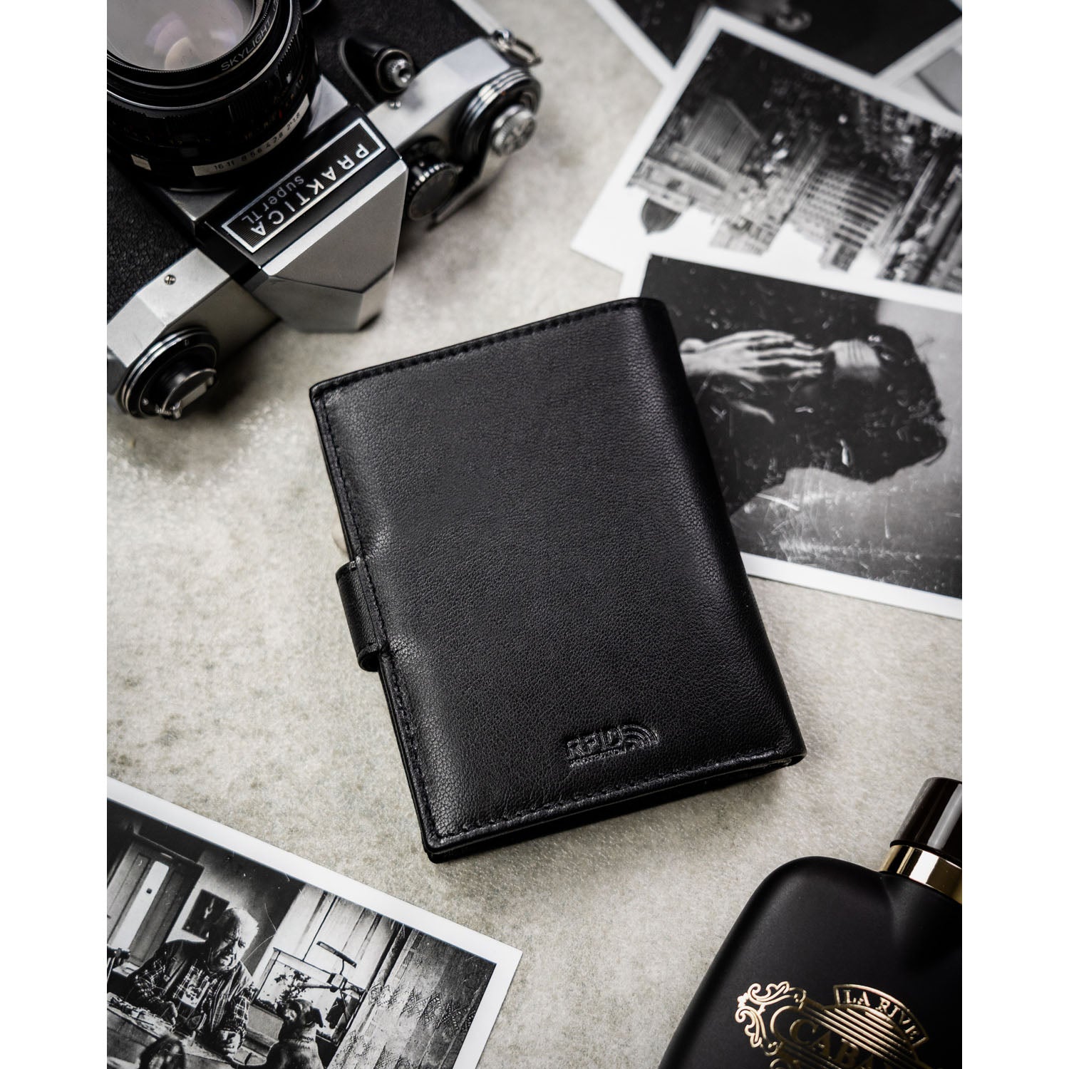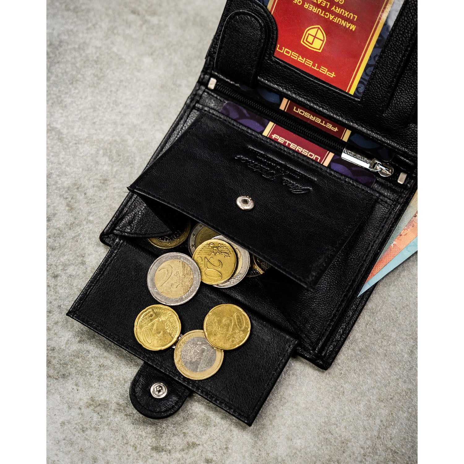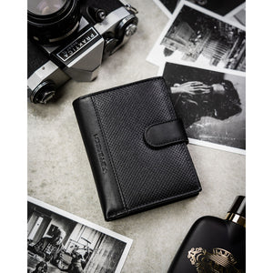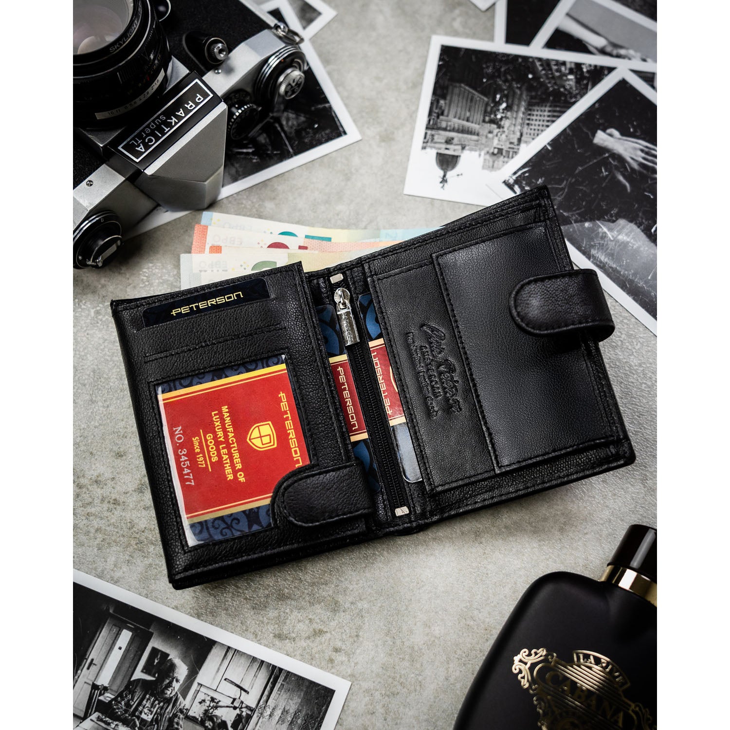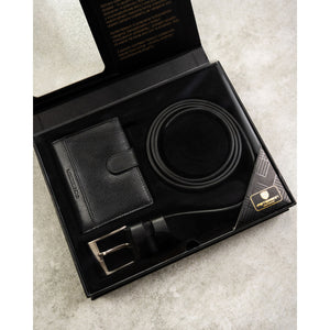 Dovanų rinkinys vyrams: vertikali natūralios odos piniginė su RFID apsauga + juodas eko odos diržas Peterson