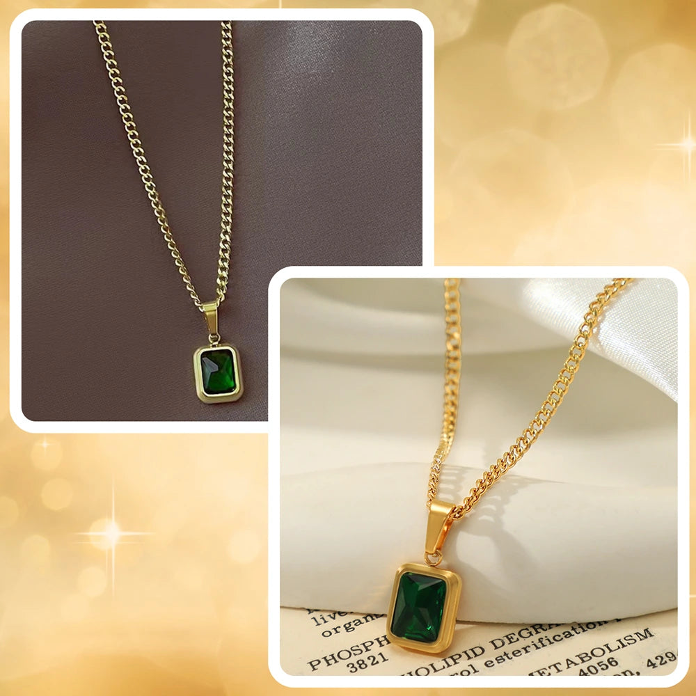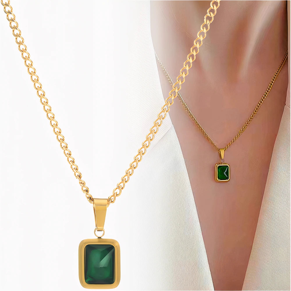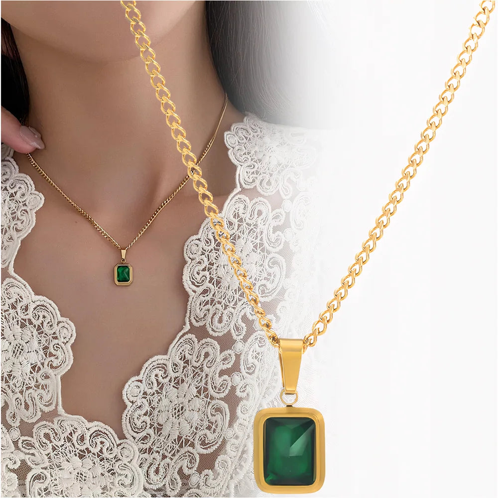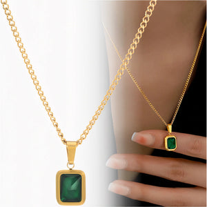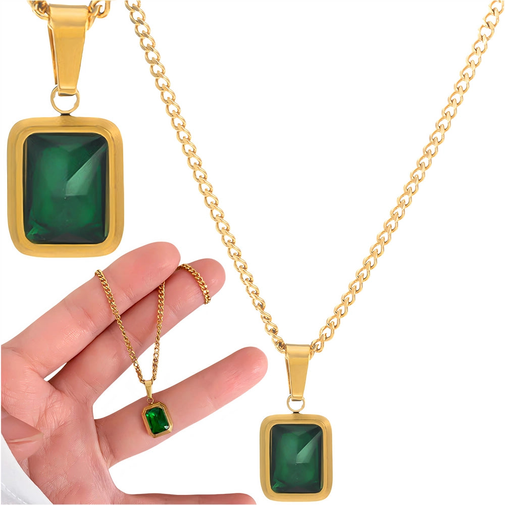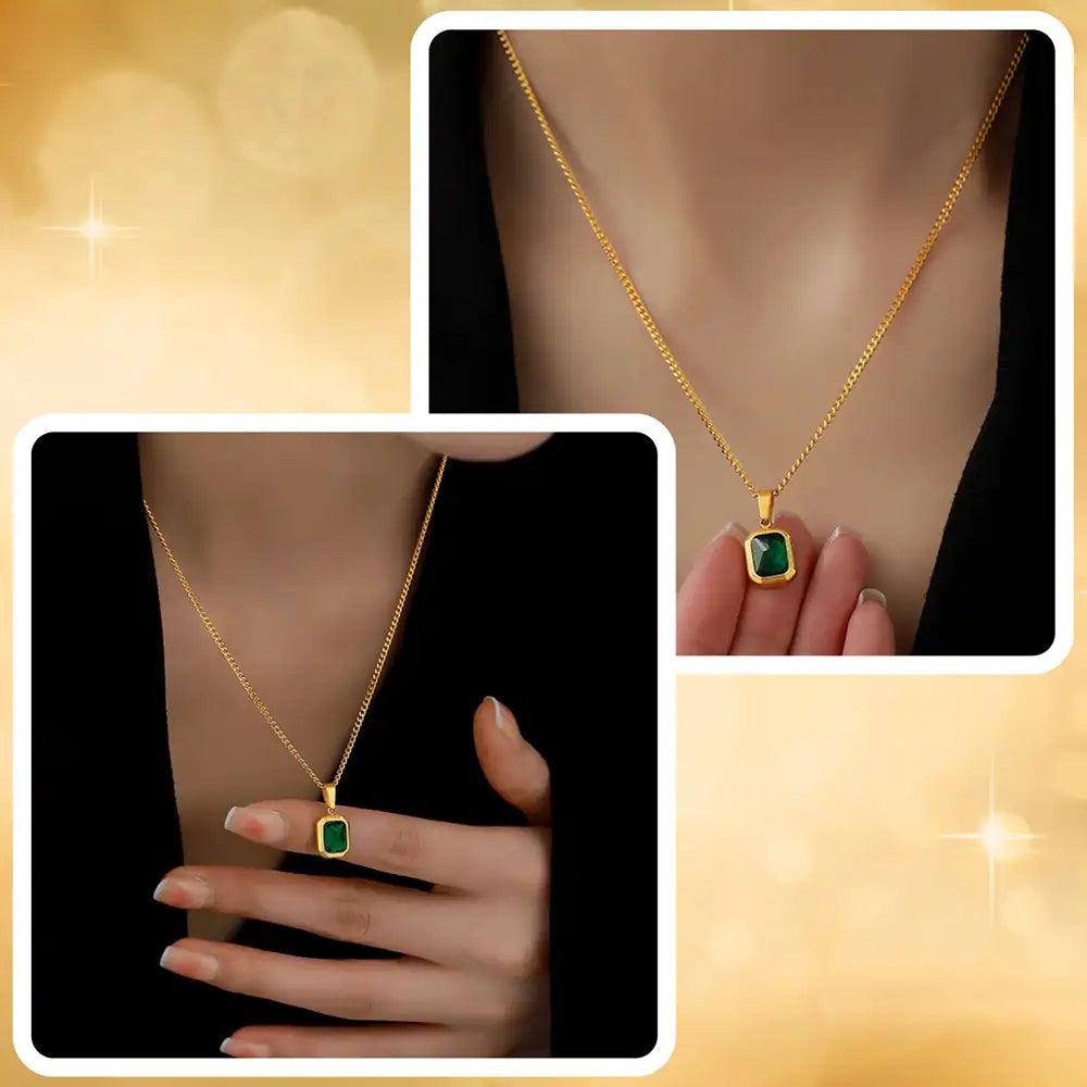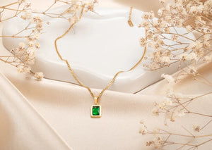 Elegantiškas auksinis vėrinys su žalia cirkonija