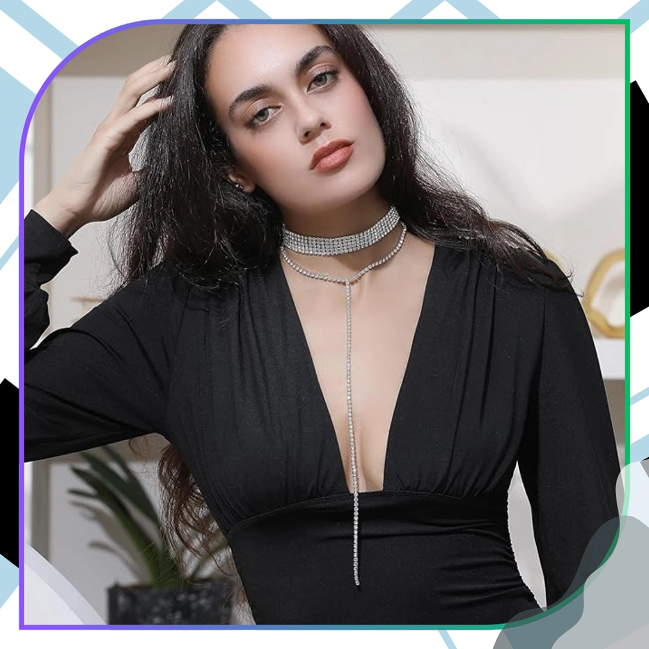 Šis prabangus chokeris puikiai pabrėžia jūsų grožį ir suteikia stiliui unikalų charakterį. Dėl kruopštaus atlikimo ir efektingo blizgesio, jis tampa idealiu pasirinkimu vakariniams išėjimams, vakarėliams, banketams ar iškilmingoms vakarienėms. Tai pasiūlymas moterims, vertinančioms modernų dizainą su klasikine elegancija.
