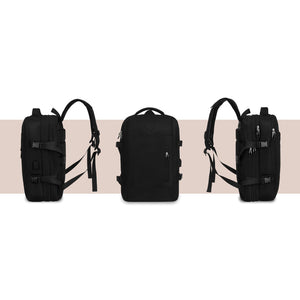 Juodas kelioninis kuprinis bagažas rankiniam bagažui lėktuve