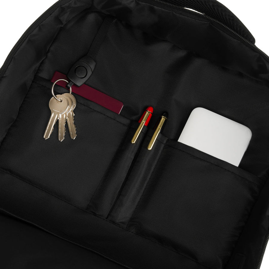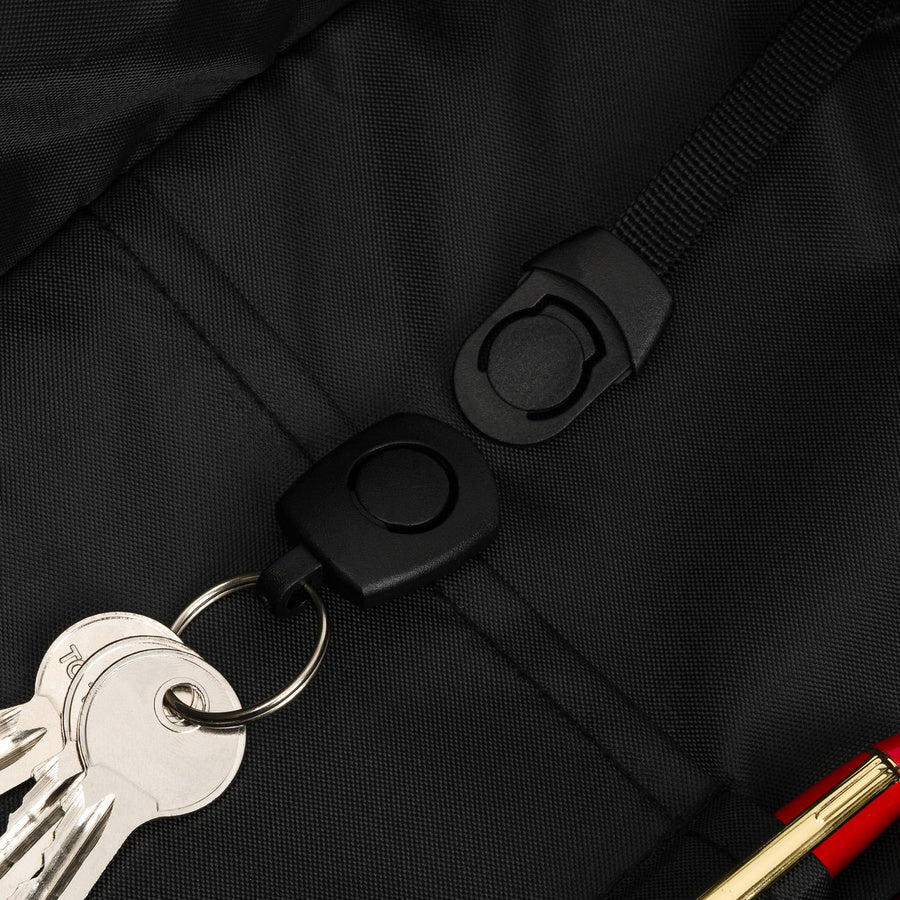 - Apatinė vertikali kišenė – greitam priėjimui prie dokumentų, įlaipinimo kortelės, akinių ar kitų plonų daiktų.